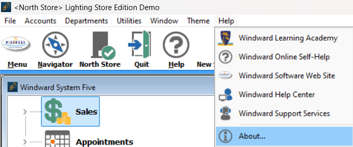 - Sign into your System Five and from the Help menu choose About.