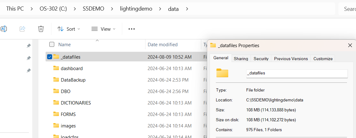 - Inside the Shared Directory folder, right click on the _datafiles folder and choose Properties