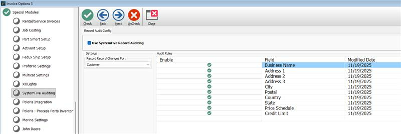 Version 7.0.3.109 and above has a new feature where you can turn on an auditing function in System 5 that reports any changes made in customer data.
